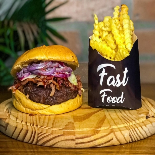 2 lanches: Pão tradicional, maionese, ketchup, hambúrguer tradicional, queijo muçarela, alface, tomate picado, batata... Ver completo