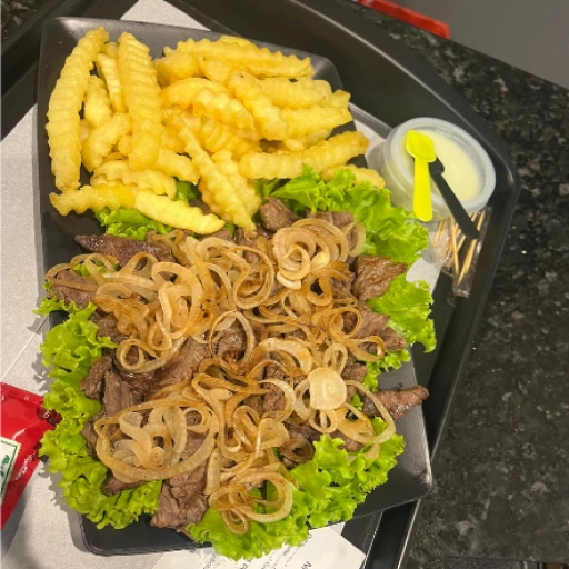 Pão tradicional, maionese, ketchup, picanha fatiada, queijo muçarela, alface, tomate picado, molho barbecue, batata pa... Ver completo
