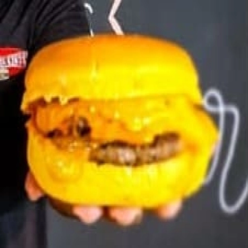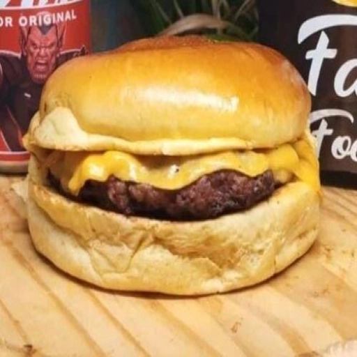 Pão brioche, maionese, ketchup, hambúrguer artesanal, queijo muçarela.
