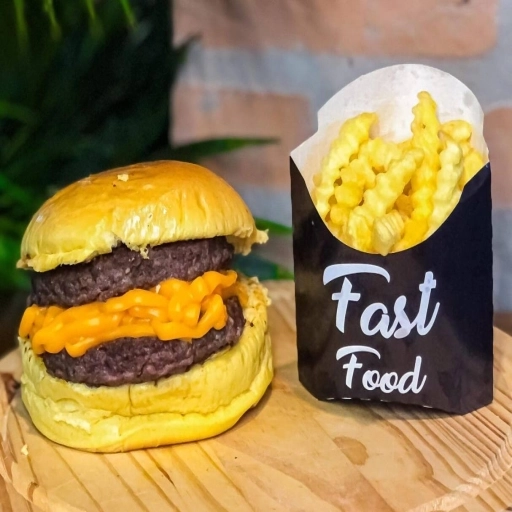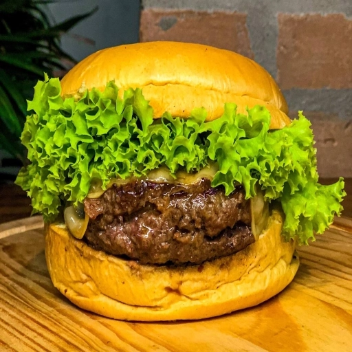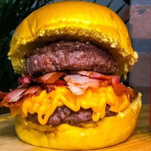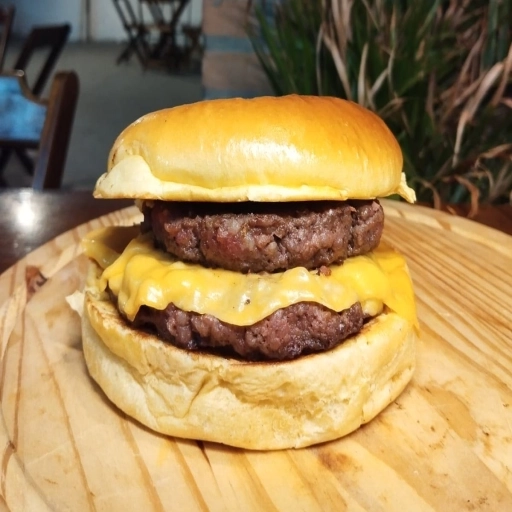 Pão brioche, maionese, ketchup, hambúrguer artesanal, queijo cheddar, queijo muçarela, alface, tomate picado, molho b... Ver completo
