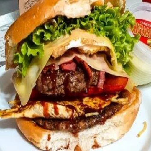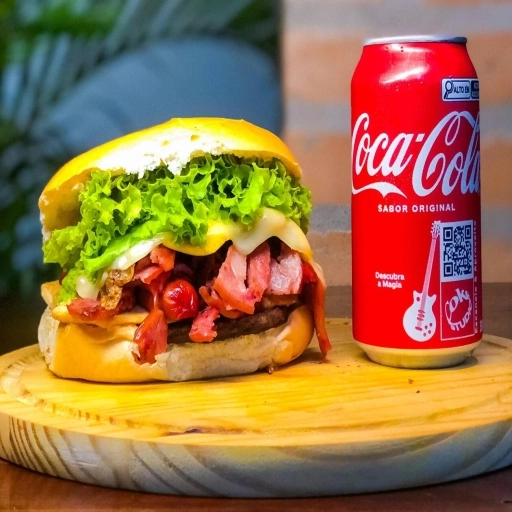 Pão brioche, maionese, ketchup, molho barbecue, hambúrguer artesanal, queijo muçarela, alface, tomate picado, molho b... Ver completo