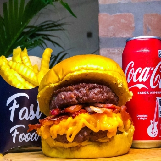 2 lanches: X Bacon (Pão de hambúrguer, maionese, ketchup, hambúrguer tradicional, bacon, queijo muçarela, alface, to... Ver completo